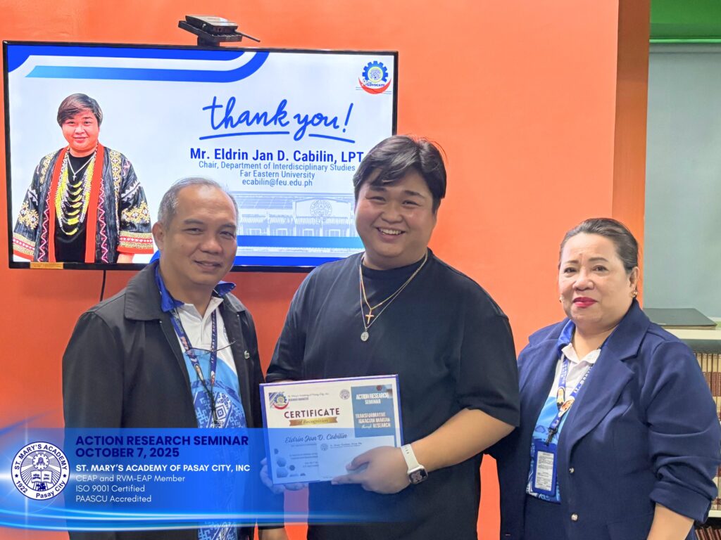 The Ignacian Marian Educators gathered for the Action Research Seminar themed “Exploring Action Research Towards Interventions and Innovations.” The event was facilitated by Mr. Eldrin Jan Cabilin, FEU Chair of the Department of Interdisciplinary Studies.