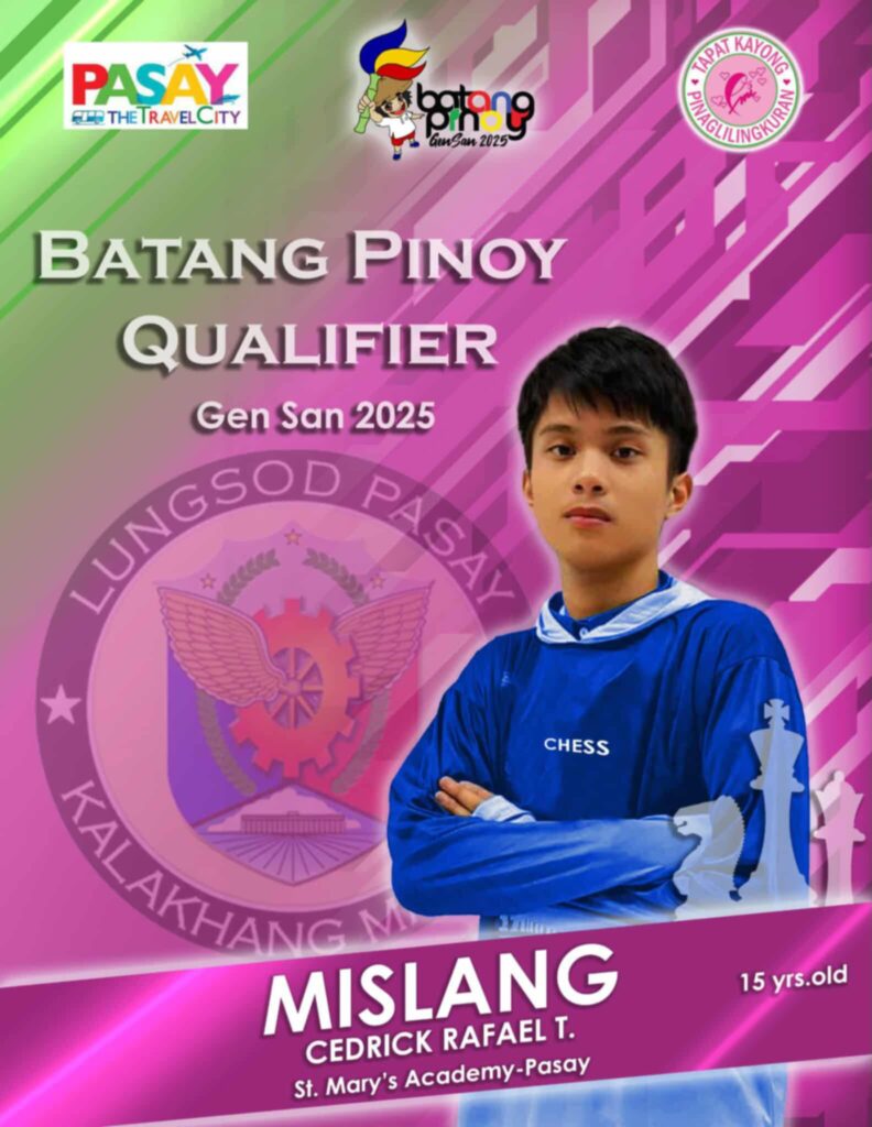 St. Mary’s Academy of Pasay, Inc. proudly congratulates Cedrick Rafael T. Mislang and Samantha Beatrice T. Mislang for qualifying in the highly anticipated Batang Pinoy 2025 – Chess Tournament in General Santos City.